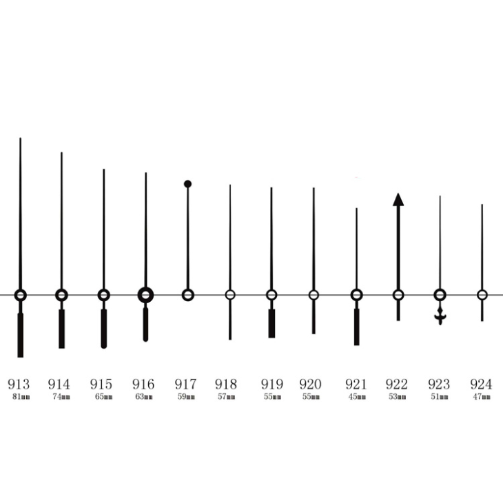 Soat qo'lining uzunligini qanday o'lchash mumkin? Soat qo'lining uzunligi boshidan oxirigacha emas, balki soat teshigidan oxirigacha. Hengrong soat kompaniyasi qora, qizil, kumush, oltin, oq va boshqalarni o'z ichiga olgan har qanday rangdagi soat qo'llarini ishlab chiqarishi mumkin. Tayyorlangan ranglar ham qabul qilinadi, chunki bizda zavod bor va keyin biz sizga yoqadigan har qanday rangni ishlab chiqara olamiz. Iltimos, bizga afzal ko'rgan rangingizni ayting, keyin biz uni ishlab chiqaramiz. Soat qo'llarining materialiga kelsak, bizda alyuminiy, mis va zanglamaydigan po'lat bor. Alyuminiy soat qoʻllarining qalinligi {0}}.4mm, 0.5mm va 0.9mm. Zanglamaydigan po'latdan yasalgan soat qo'llari va mis soat qo'llarining qalinligi 0,3 mm va 0,5 mm.